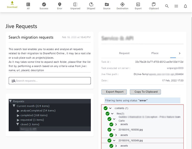Before starting the migration, a full analysis of the place is performed, a report is sent to the requestor to validate the contents to migrate or to exclude some sub places from the migration.